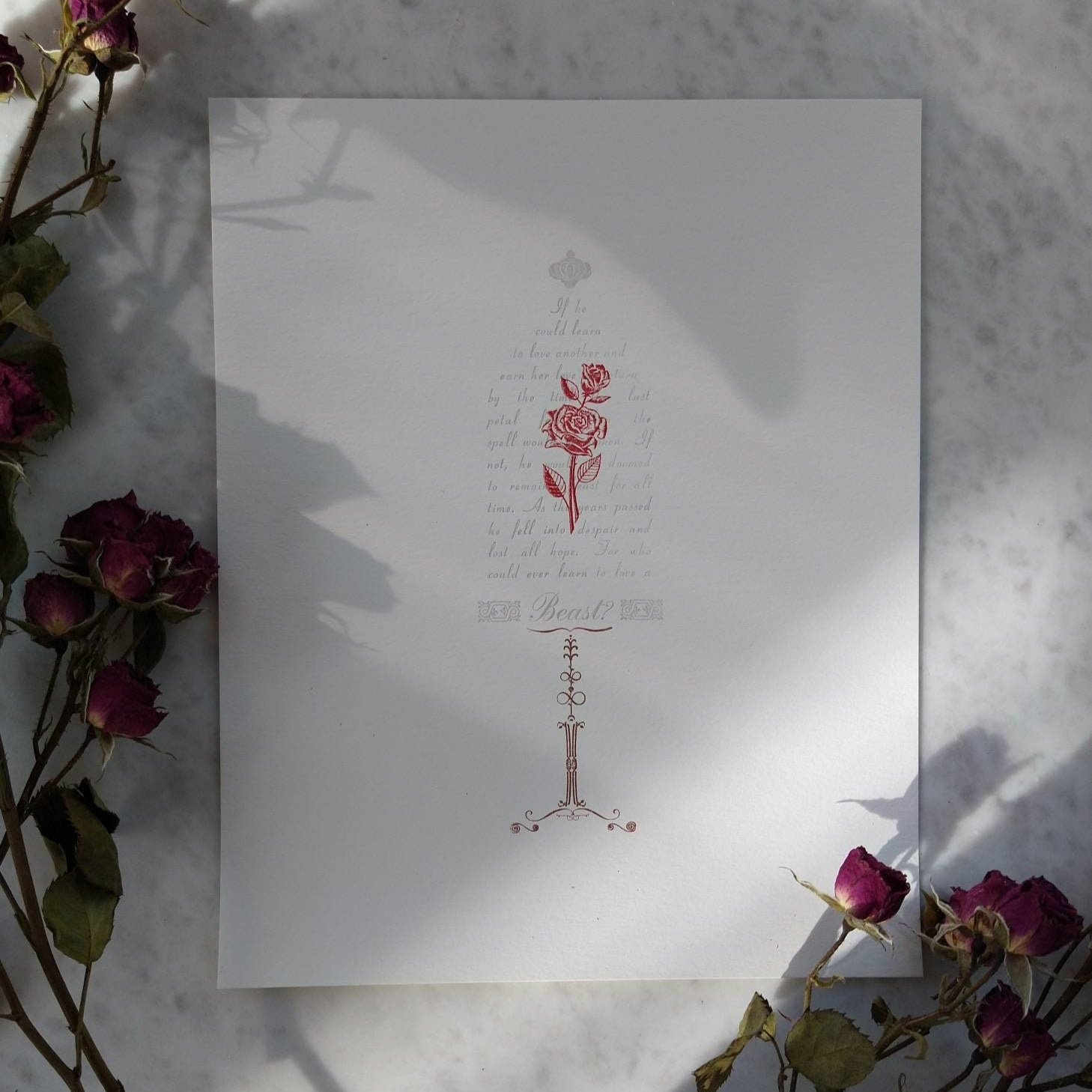 Beauty and the Beast Enchanted Rose Letterpress Print