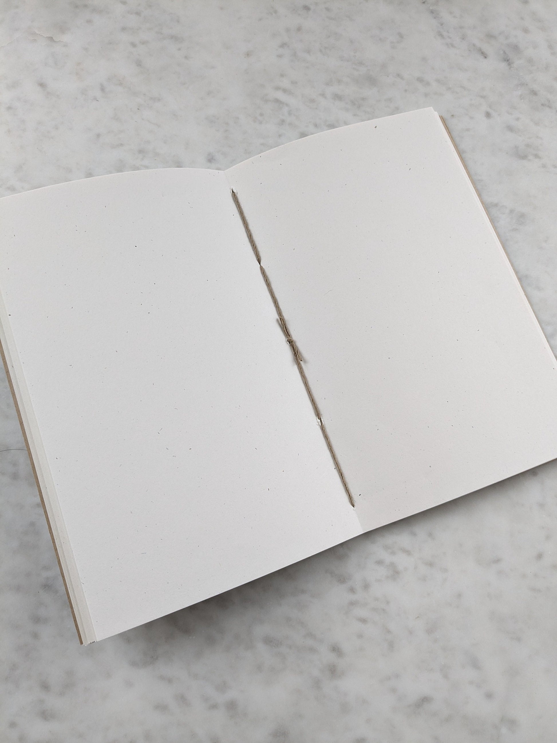 All paper was cut by hand and then hand-bound using a pamphlet stitch with hemp cord.
