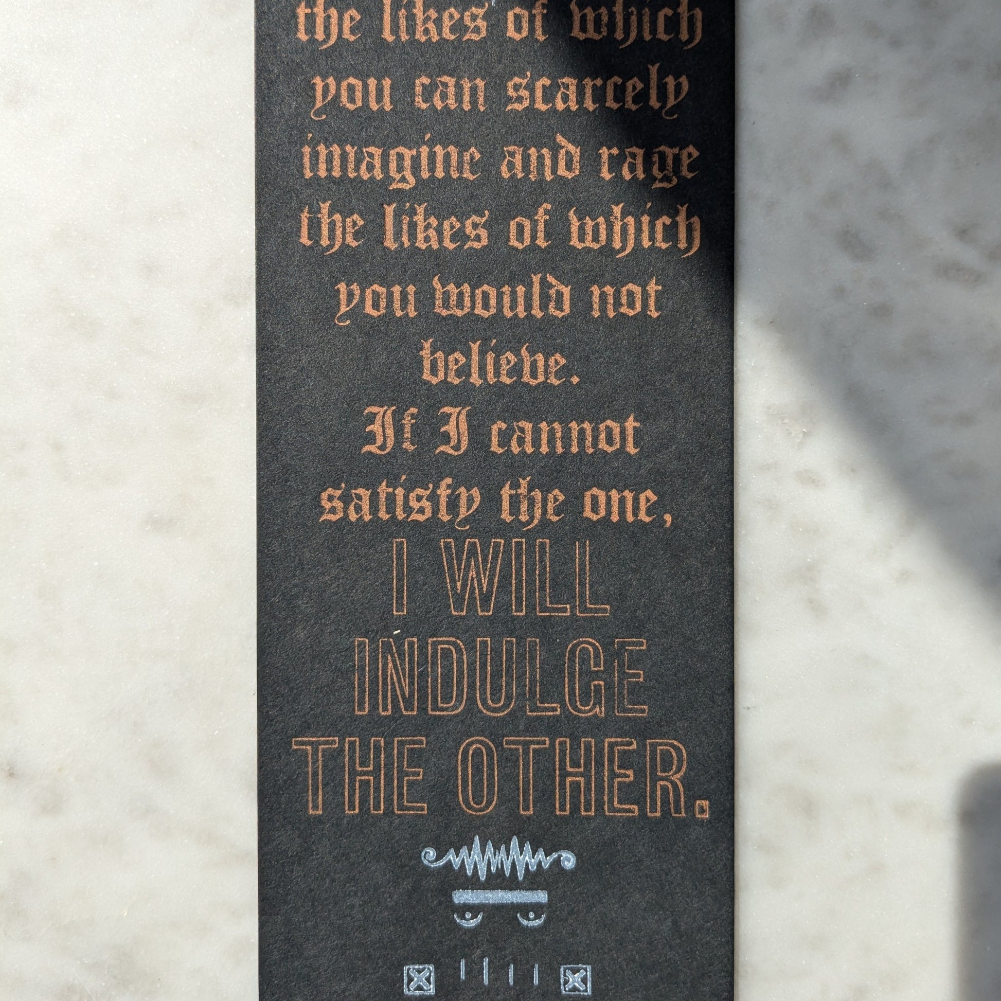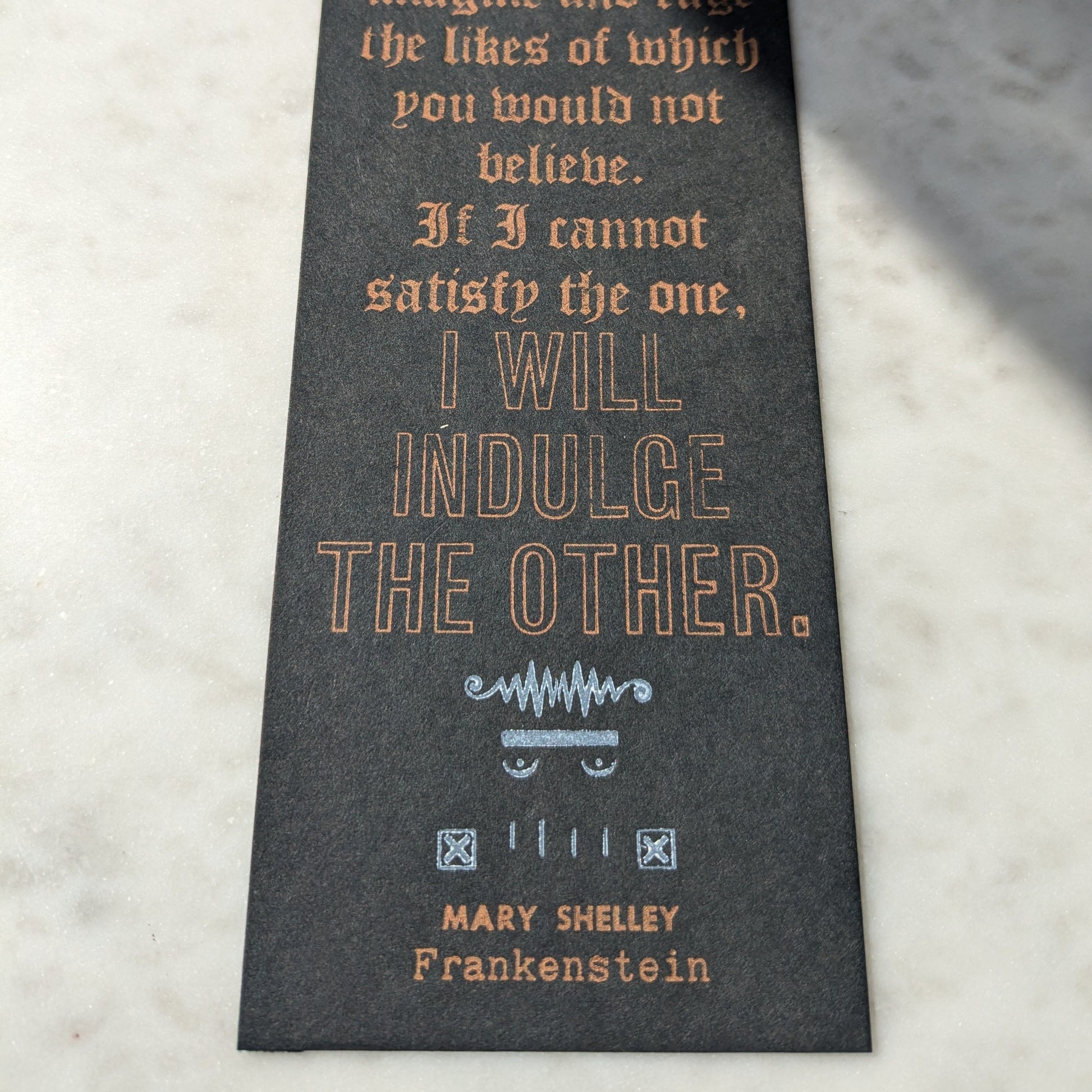 There cannot be a more suitable way to mark where you left off in your current horror story than with this letterpress bookmark.