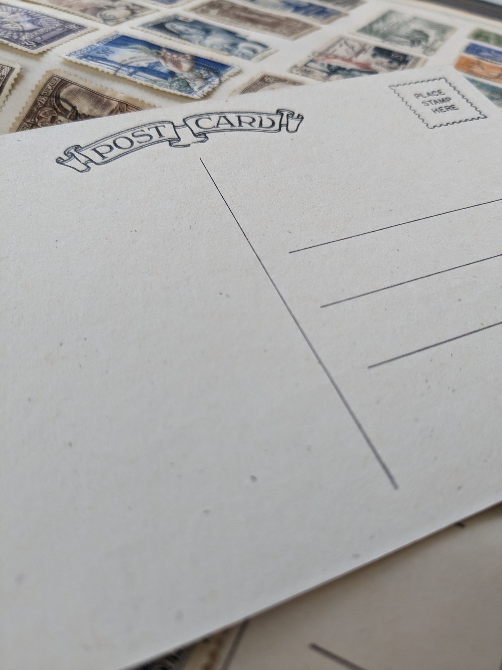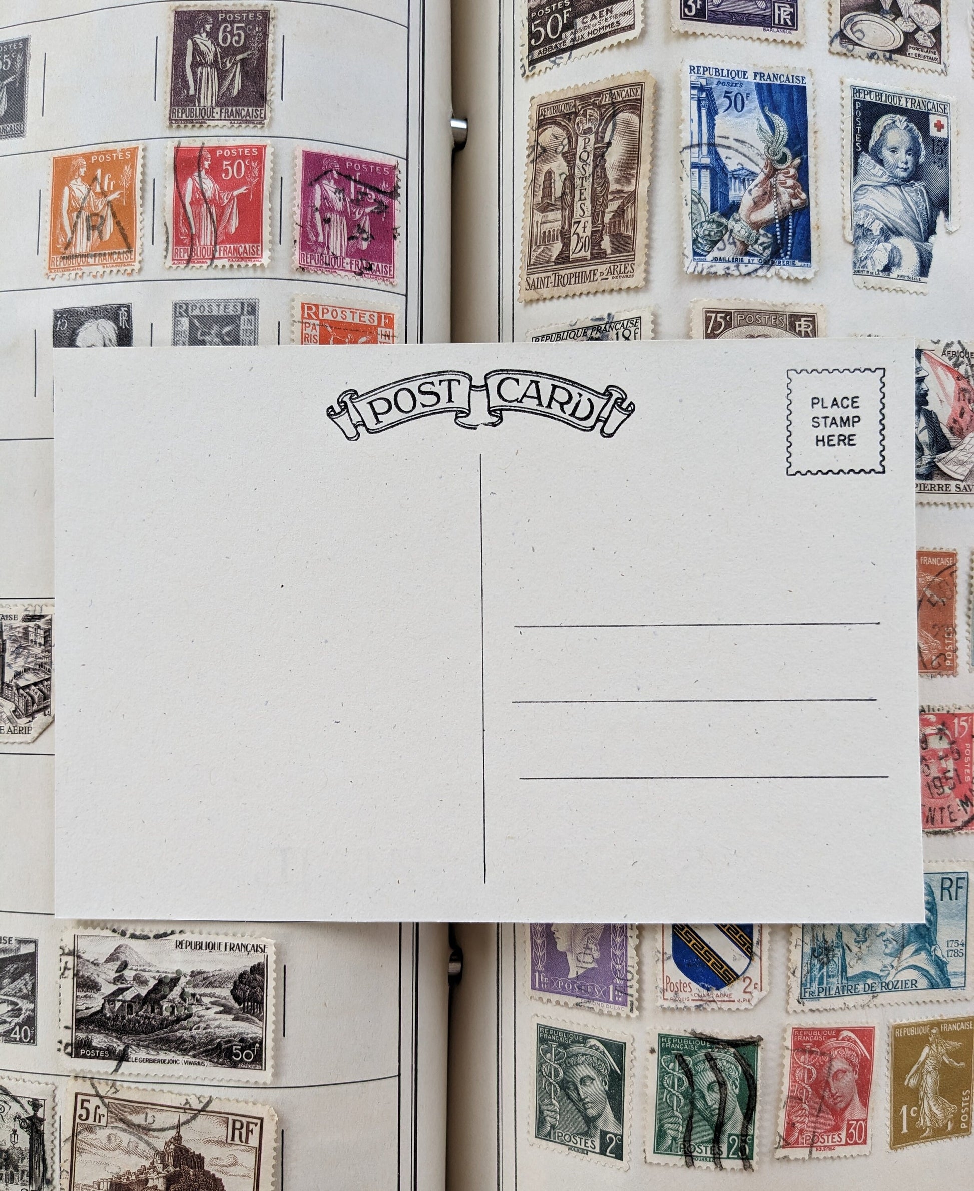 This listing is for one postcard. Please choose which color you would like before buying.