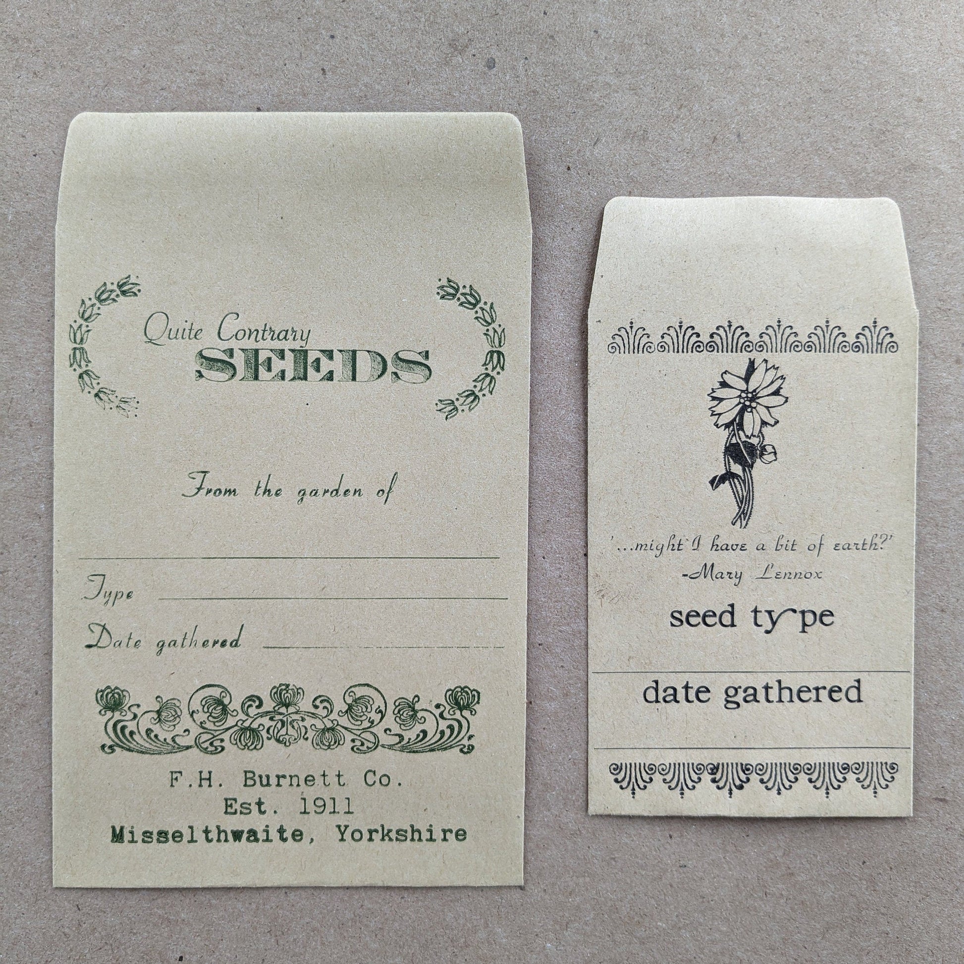 Gardens are meant for sharing...and so are seeds! Inspired by Frances Hodgson Burnett's The Secret Garden, these seed packets are sure to be loved by any book and plant enthusiast.