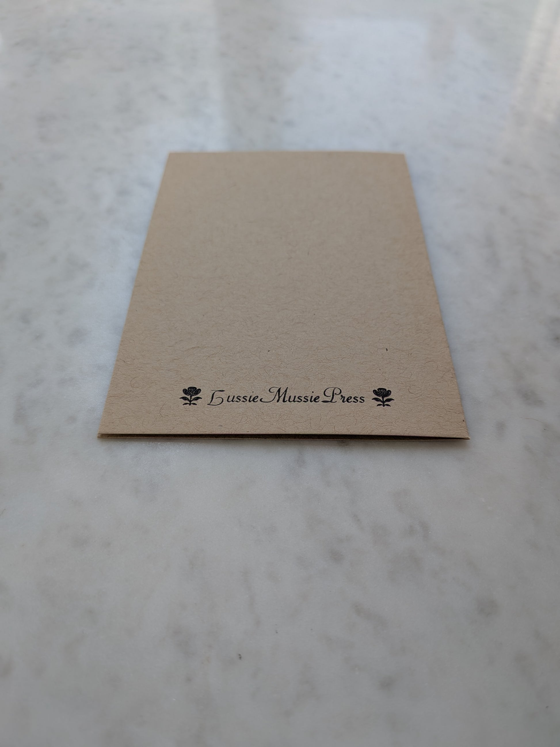 In an effort to do our part and lessen the amount of waste we contribute, Tussie Mussie Press is wrapping cards in paper glassine envelopes instead of plastic sleeves..