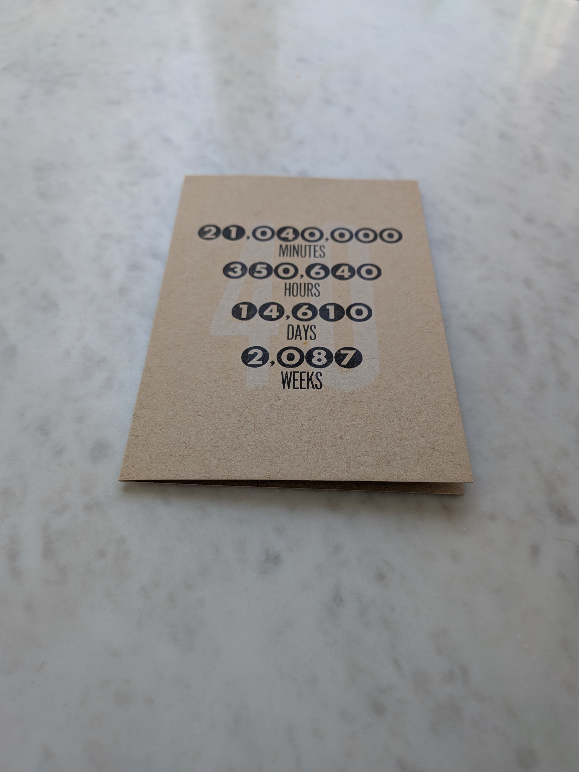 Let's celebrate getting older! This is the perfect card for the person in your life who is turning the big 4-0, whether they are excited to celebrate, or maybe not so much. 40 years means 40 years of memories, and this card can be a great reminder of that.